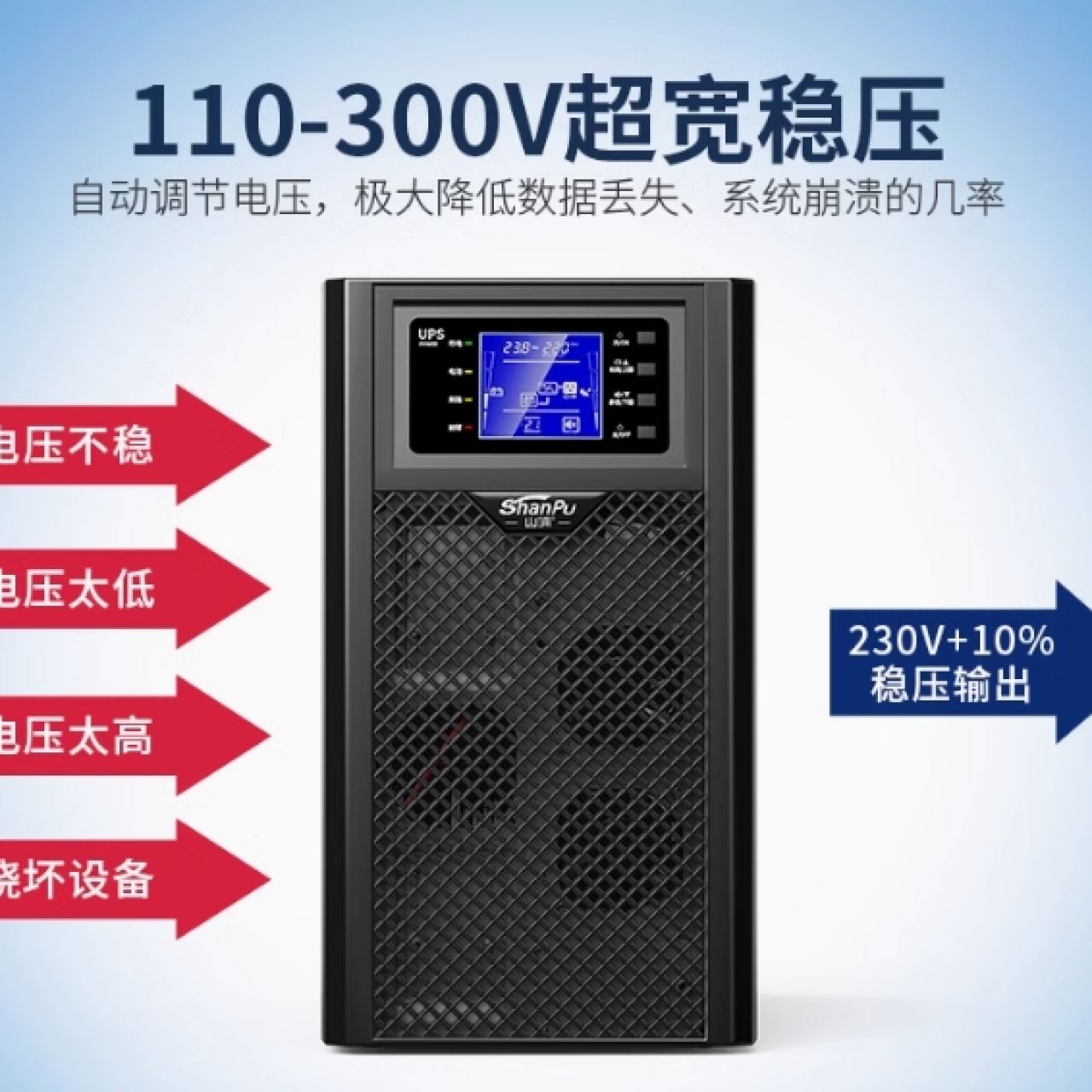 山埔ups不间断电源220V在线式3kva主机电脑防停电备用稳压家用C3K