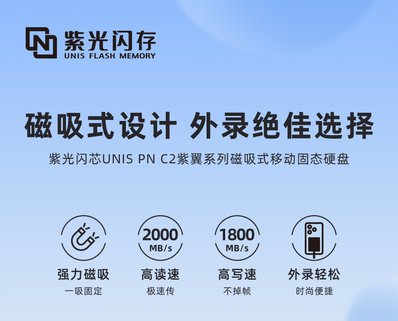 紫光闪存移动固态硬盘1t外接2t手机电脑游戏金属存储Typec磁吸