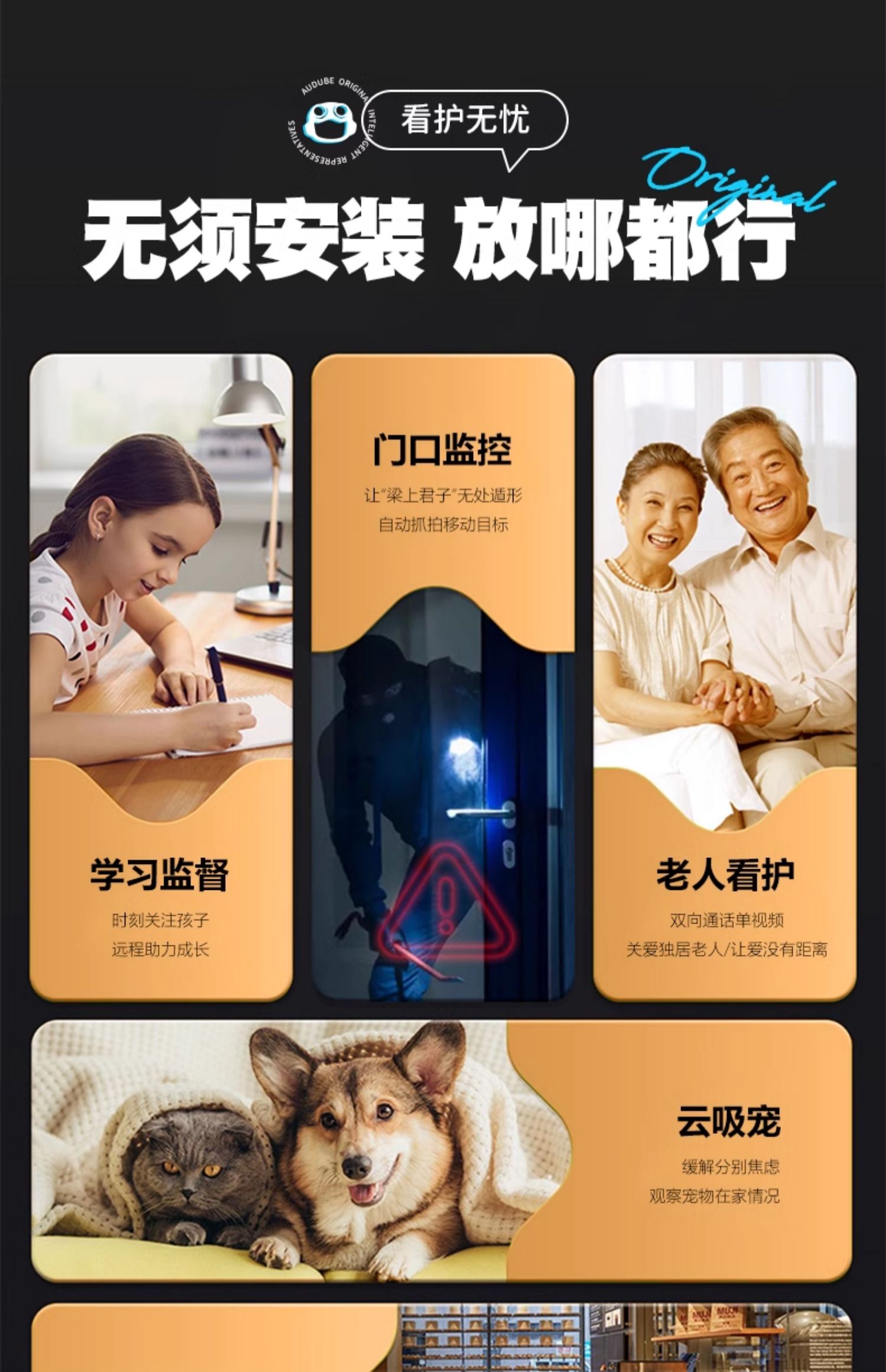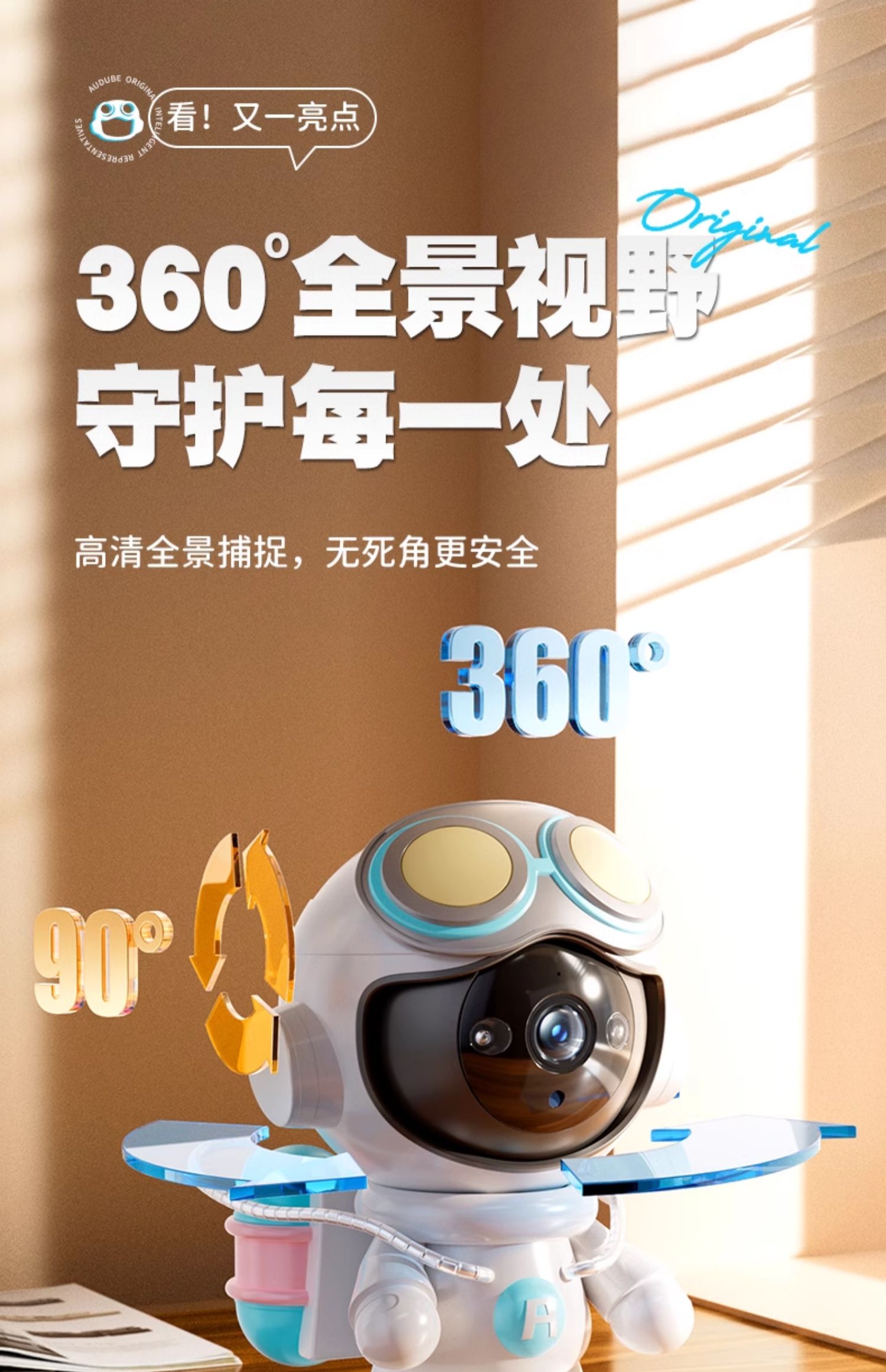 Audube智能无线摄像头监控器家用手机远程360度全景高清夜视室内