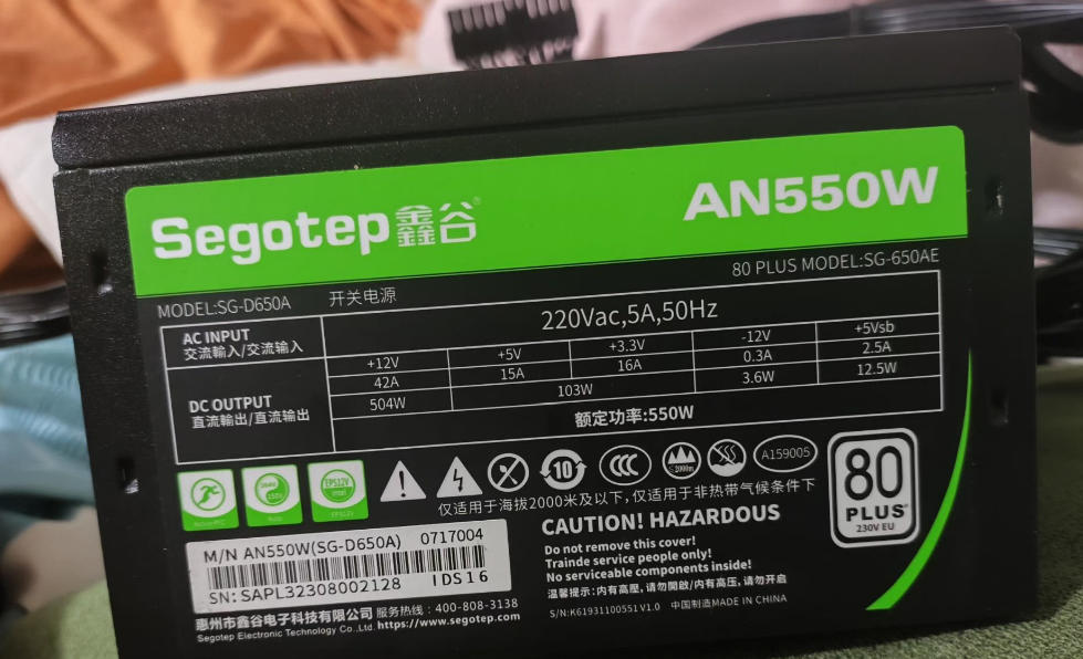 鑫谷额定功率500W,白金认证电脑电源。转换效率高,散热小,风扇非常静音。故障后维修过,功能正常。实惠价出,除偏